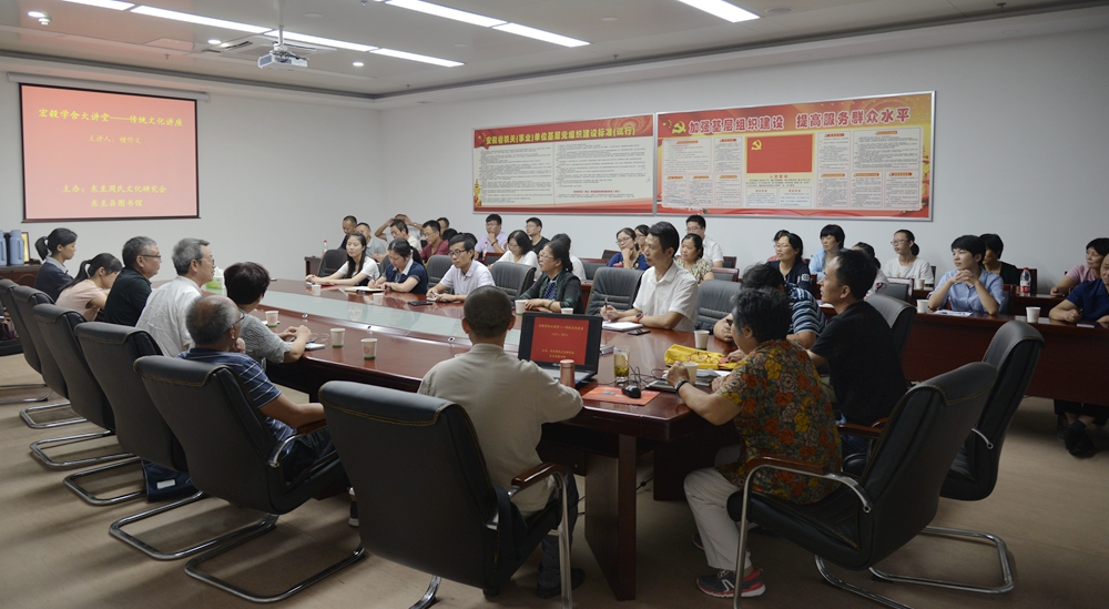 8月21日晚,“宏毅学舍大讲堂——传统文化讲座”在池州东至县文化中心四楼文旅局会议室举行,邀请首都师大东至籍知名学者、雒诵堂山长檀作文先生主讲,40余名传统文化爱好者聆听了讲座。讲座由东至周氏文化研究会常务副会长、秘书长周胜良主持。此次活动由东至周氏文化研会、县图书馆联合主办的。