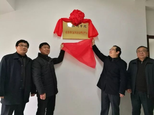 1月19日上午,池州学院东至周氏家风文化研究中心成立仪式在池州学院马克思主义学院召开,东至县及周氏文化研究部分代表受邀与学院多名专家学者共同出席仪式。学院党委副书记孙晓峰,东至县委常委、副县长胡兵,马克思主义学院院长祝中侠、周氏文化研究会副会长兼秘书长周胜良等共同为中心揭牌。