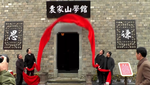 (县长李明月、宣传部长柯春平等为袁家山学馆揭牌)