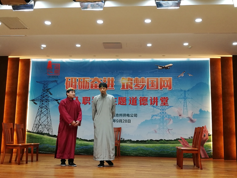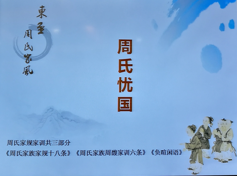活动当日,东至周氏文化研究会副秘书长丁德芬受邀作了“东至周氏家风”的主旨讲座,向与会的供电系统员工介绍了东至周氏“崇儒尚德、培心正业、清慎开明、勤俭乐济”的家风精髓,以及从晚清重臣周馥开始下延五代的百年时间里,周氏家族在政界、商界和学界涌现出的大量杰出人物的原因,诠释周氏家族百年不衰的魅力。供电东至公司还专门编排了以周氏家风为主题并全部由公司新进员工主演的情景剧《周氏忧国》,充分展示东至周氏家风魅力、东至人文底蕴的同时,也展示了东至供电人的精神风貌。