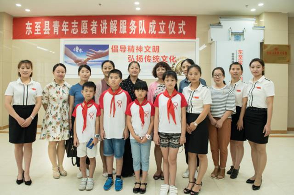 为进一步树立东至良好的对外形象,打造一支高素质、强能力的志愿者讲解员队伍。7月10日上午,东至县青年志愿者讲解服务队成立仪式在东至周氏家风馆顺利举行。团中央社会联络部部长刘爱平、团市委书记朱芸芸、团市委副书记徐洁芳、县政府副县长喻辉、团中央国际联络部主任科员郑悦、团青阳县委主要负责同志及团东至县委领导班子出席成立仪式。