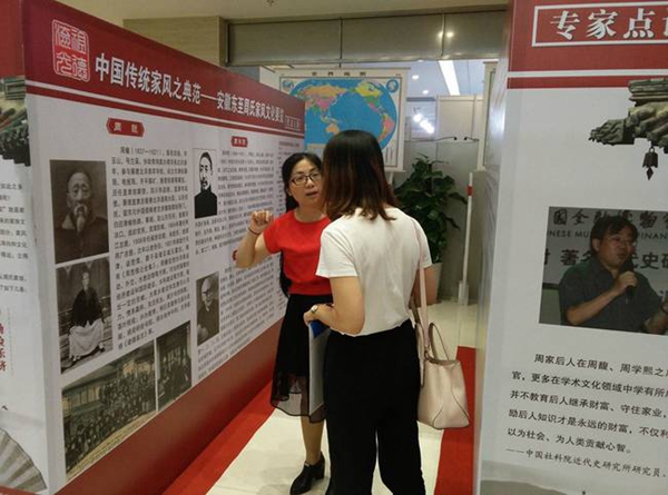 展区内,“百年家风,六世书香”的主题展吸引了众多过往参观者好奇的目光。除详细图文展板介绍外,还展示了“安徽东至周氏家族”后人100年来撰写的各种书籍近30种,其中部分书籍为绝版图书,十分珍贵。