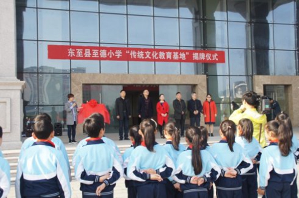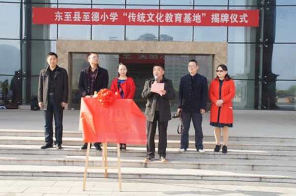 至德小学首次将“传统文化教育基地”牌匾挂在东至家风家训展览馆旁