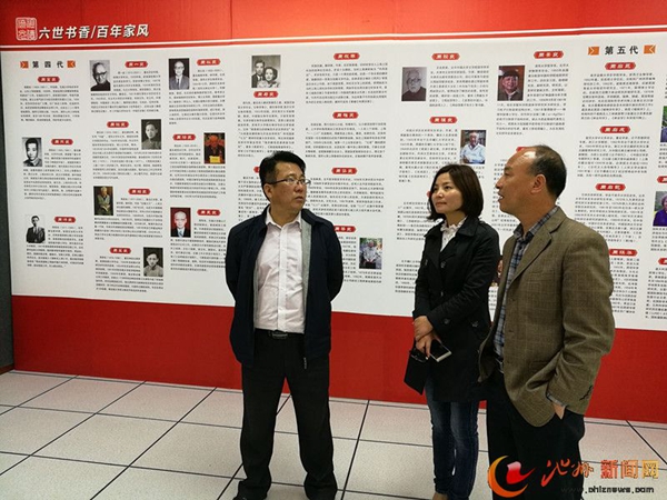 家风馆内,参观团人员认真观看展板,听取研究会工作人员介绍周氏家族人物脉络、家风渊源、以及其他共八个版块的介绍。参观期间,不断驻足聆听,对于东至周氏文化研究取得的成果表示称赞。
